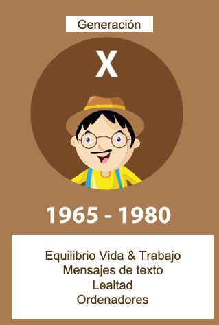- Generación X o GenX: nacidos entre mediados de los 60 y 1980.