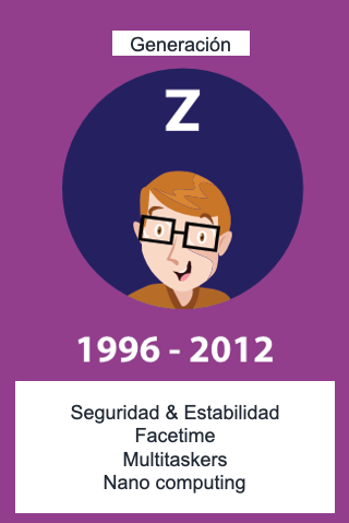 - Generación Z o Centennials: nacidos entre finales de los 90 y la primera década de los 2000.