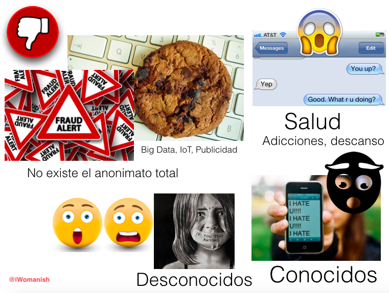 Invertimos mucho tiempo en compartir todo lo bueno que sacamos de la red –a ellos les gustan los videojuegos, ellas son más de Instagram-, pero después pasamos a lo más desconocido. A lo incómodo. Me centré menos en los peligros que habitualmente se cubren en las noticias y en las charlas (abusos, sextorsión, ciberbullying) y más en las consecuencias de un mal uso de lo digital (que a veces es lo mismo pero se enfoca de forma distinta). Y precisamente hablando sobre el anonimato, sobre la privacidad, sobre cookies y el Internet de las Cosas, sobre salud y falta de sueño, sobre perfiles falsos, sobre huella digital… es cuando ellos más se entregaron a preguntar sobre riesgos y maneras de evitarlos.